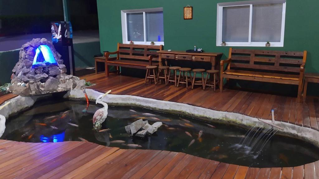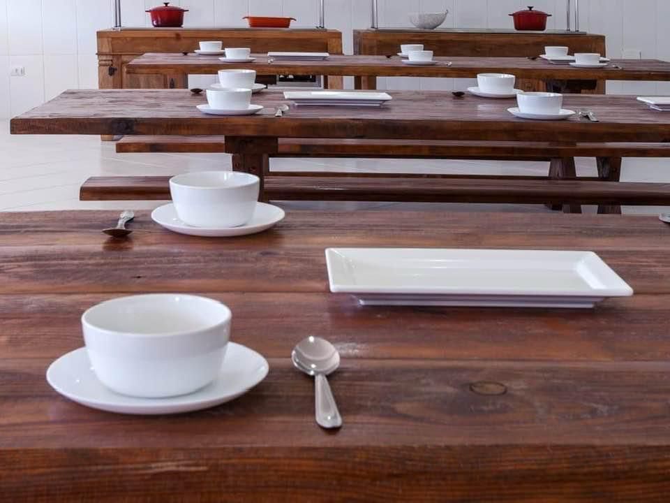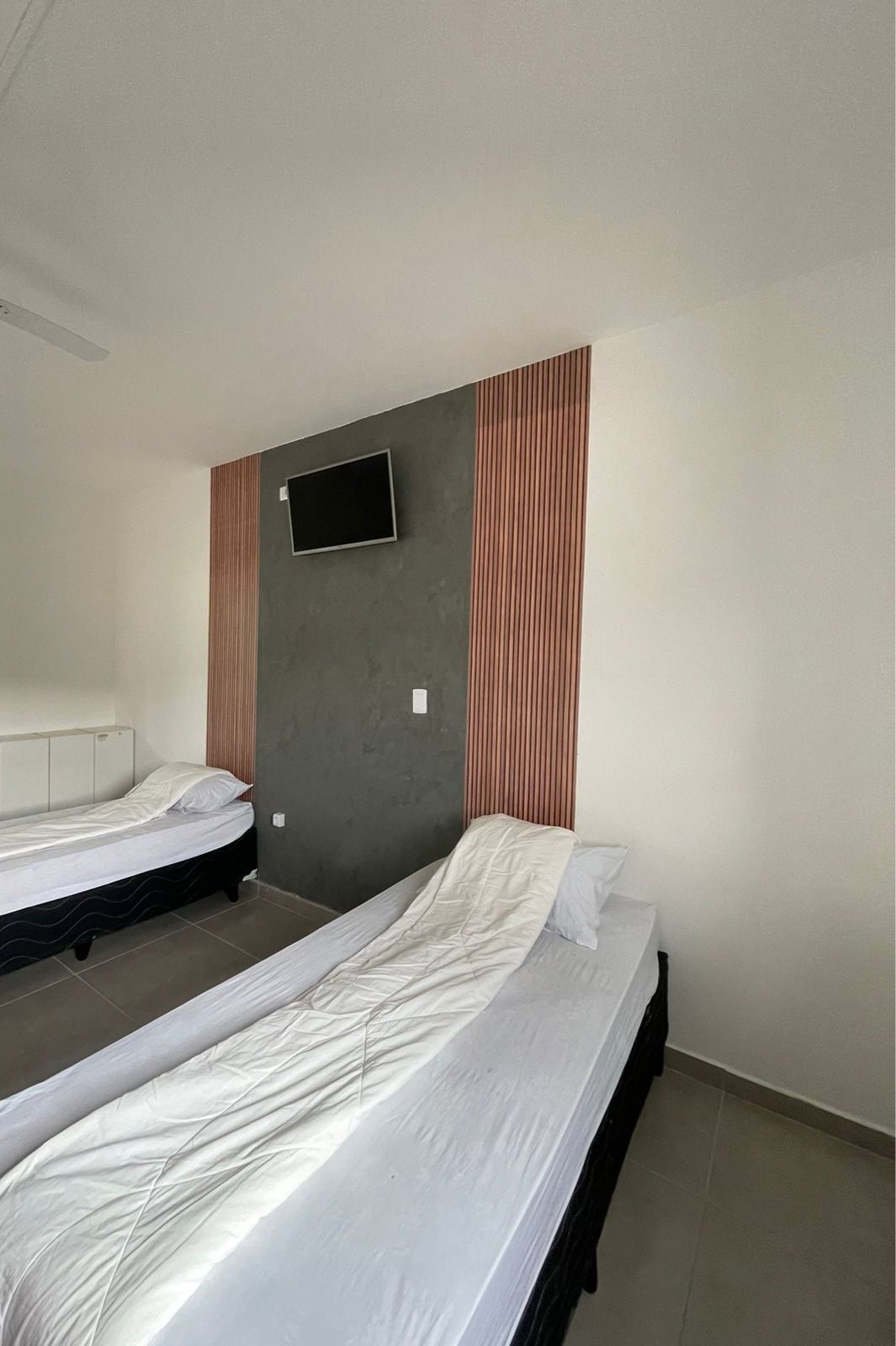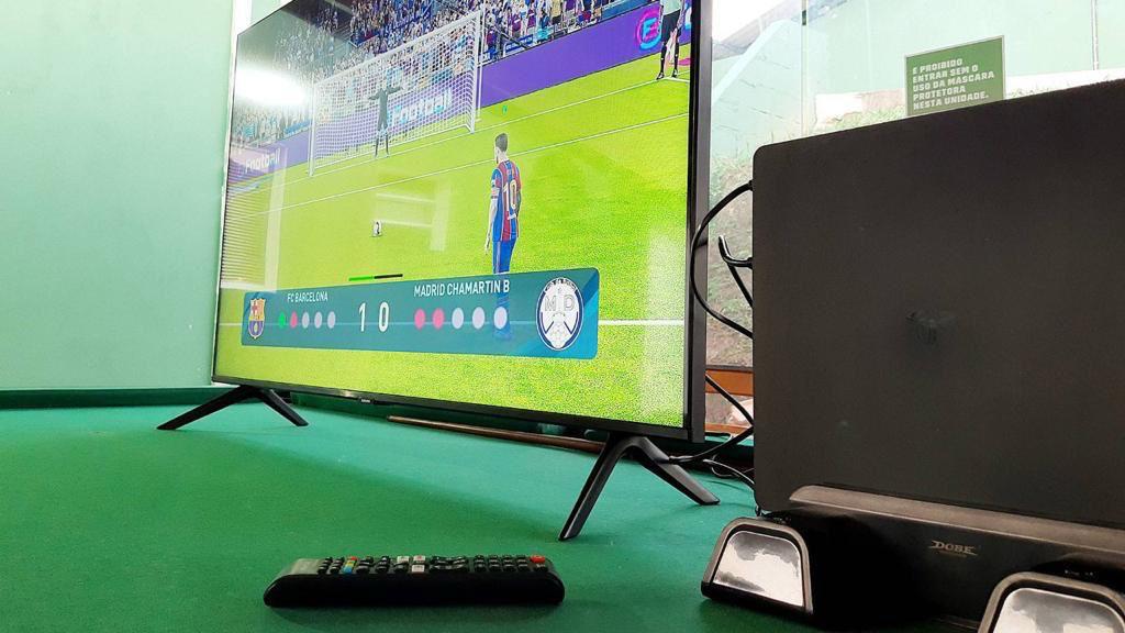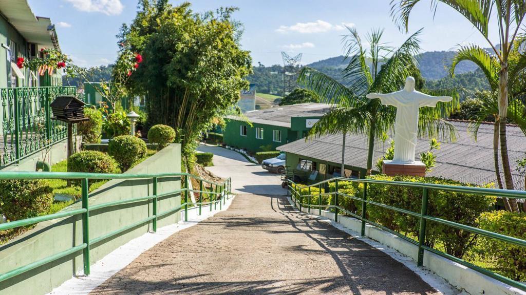 Ambientes equipados com piscina, academia, campo e quadra para esportes, refeitório, além de uma área ampla.